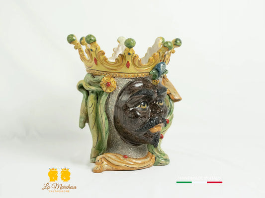 Teste di Moro in Ceramica di Caltagirone Classica Corona 38cm