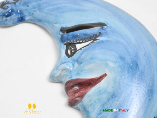 Luna in Ceramica di Caltagirone azzurro decorazione da parete 23cm