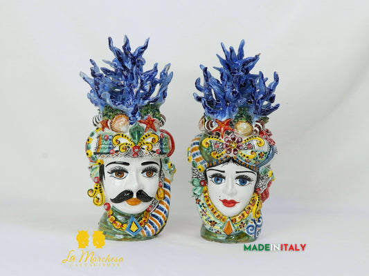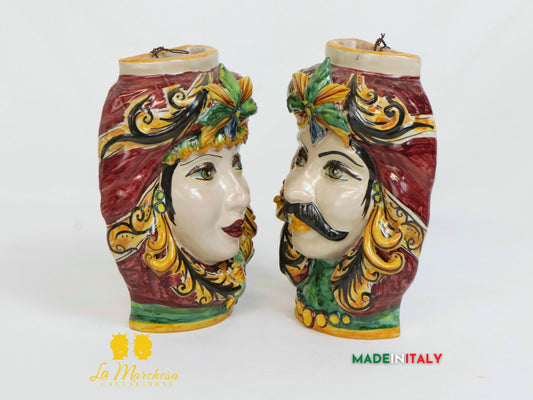 Teste di Moro Ceramica di Caltagirone coralli h29 - Vari Colori