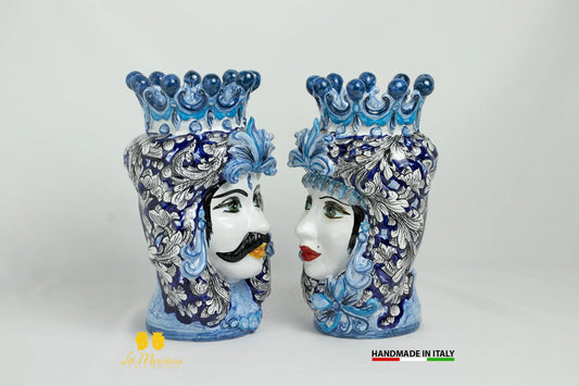 Teste di Moro Ceramica di Caltagirone Classiche ornato blu cobalto - Varie Misure