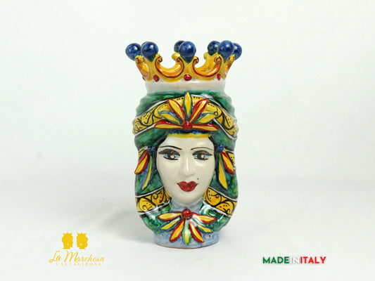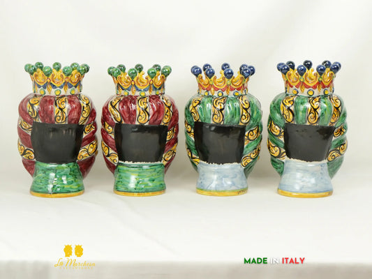 Teste di Moro Afro in Ceramica di Caltagirone Dettagli Verdi - Varie Misure