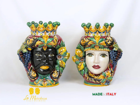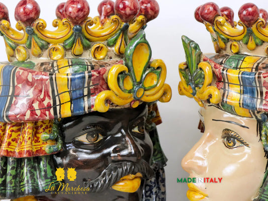 Coppia Teste di Moro in Ceramica di Caltagirone con panneggio - Varie Misure