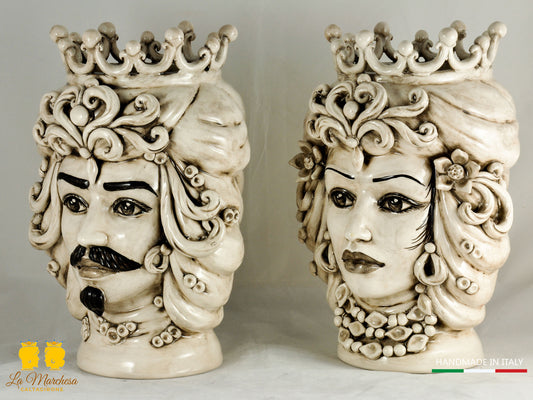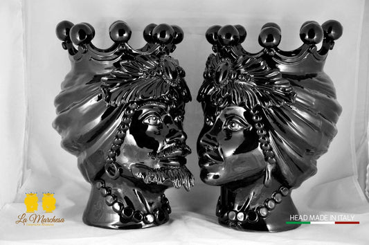 Teste di Moro in Ceramica di Caltagirone Nere Barocco Corona h39