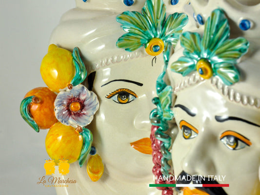 Teste di Moro in Ceramica di Caltagirone Sabbia Frutta - Varie misure