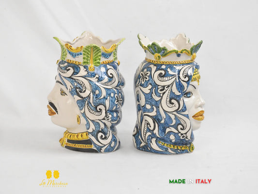 Teste di Moro Ceramica Caltagirone Barocco Blu H19