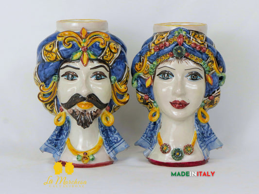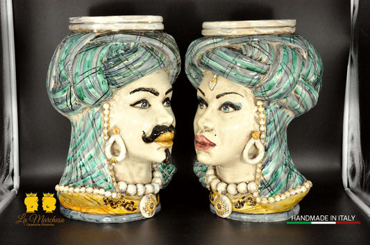 Teste di Moro in Ceramica di Caltagirone Decoro '600 H34 - Vari Modelli