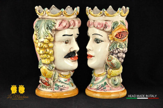 Teste di Moro in Ceramica di Caltagirone Corona e Frutta H14 - Vari Modelli