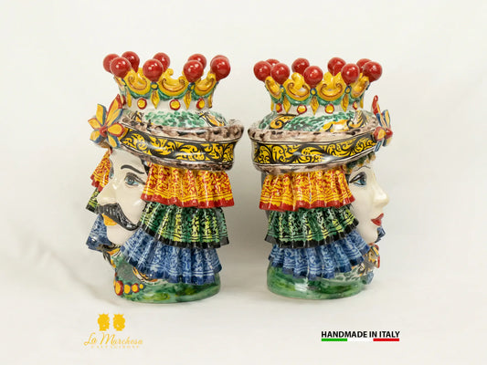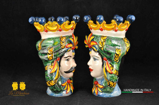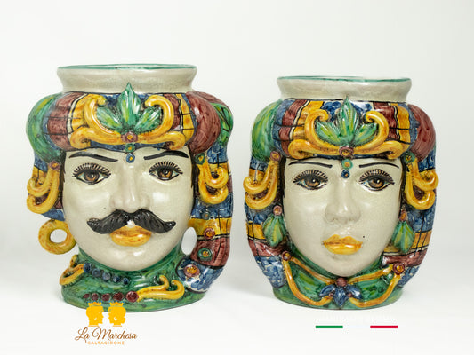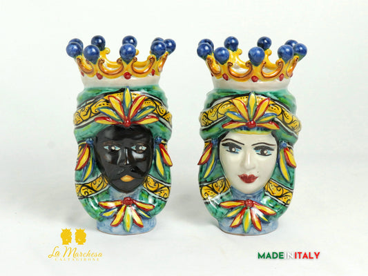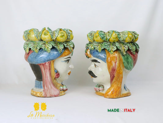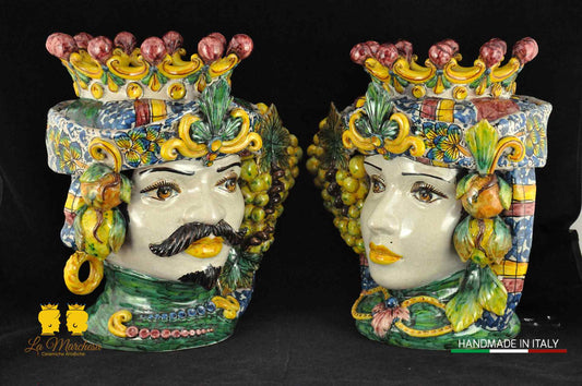 Classica Coppia di Teste di Moro in Ceramica di Caltagirone classico - Vari Modelli