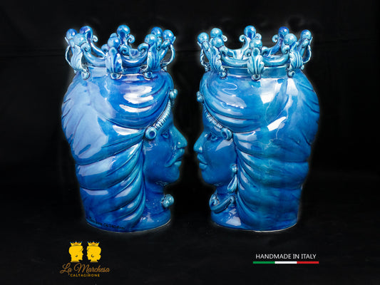 Teste di Moro Ceramica di Caltagirone corona blu cobalto 28cm