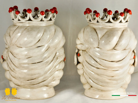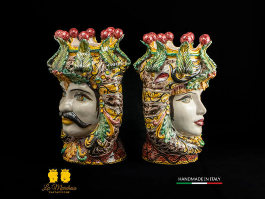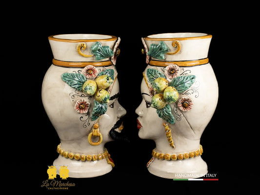 Teste di Moro Ceramica di Caltagirone applicazioni fiori e frutta h40