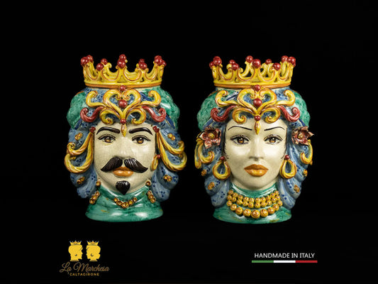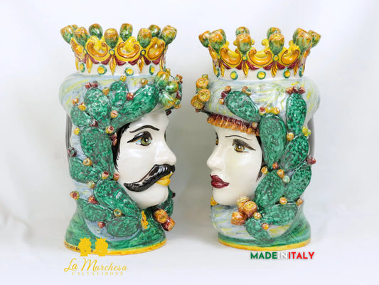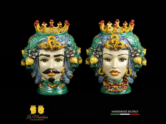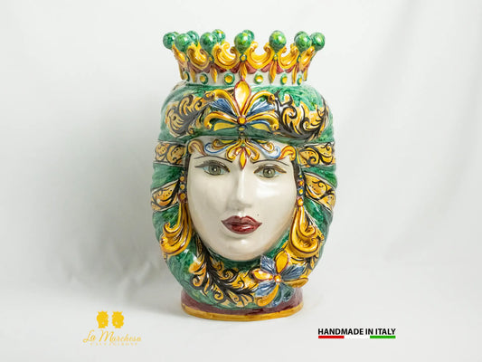 Teste di Moro Ceramica Caltagirone Classiche corona verde rame H46