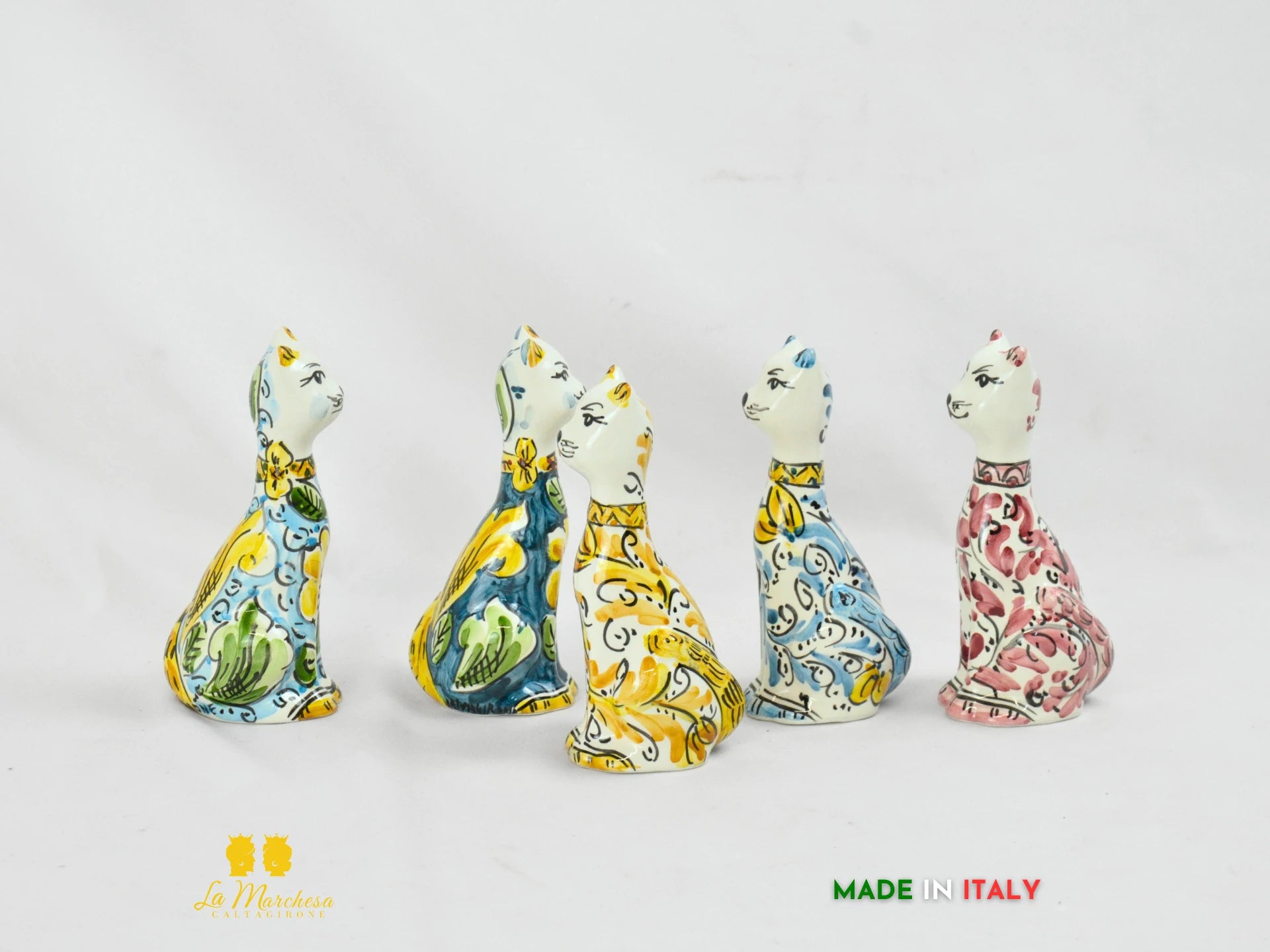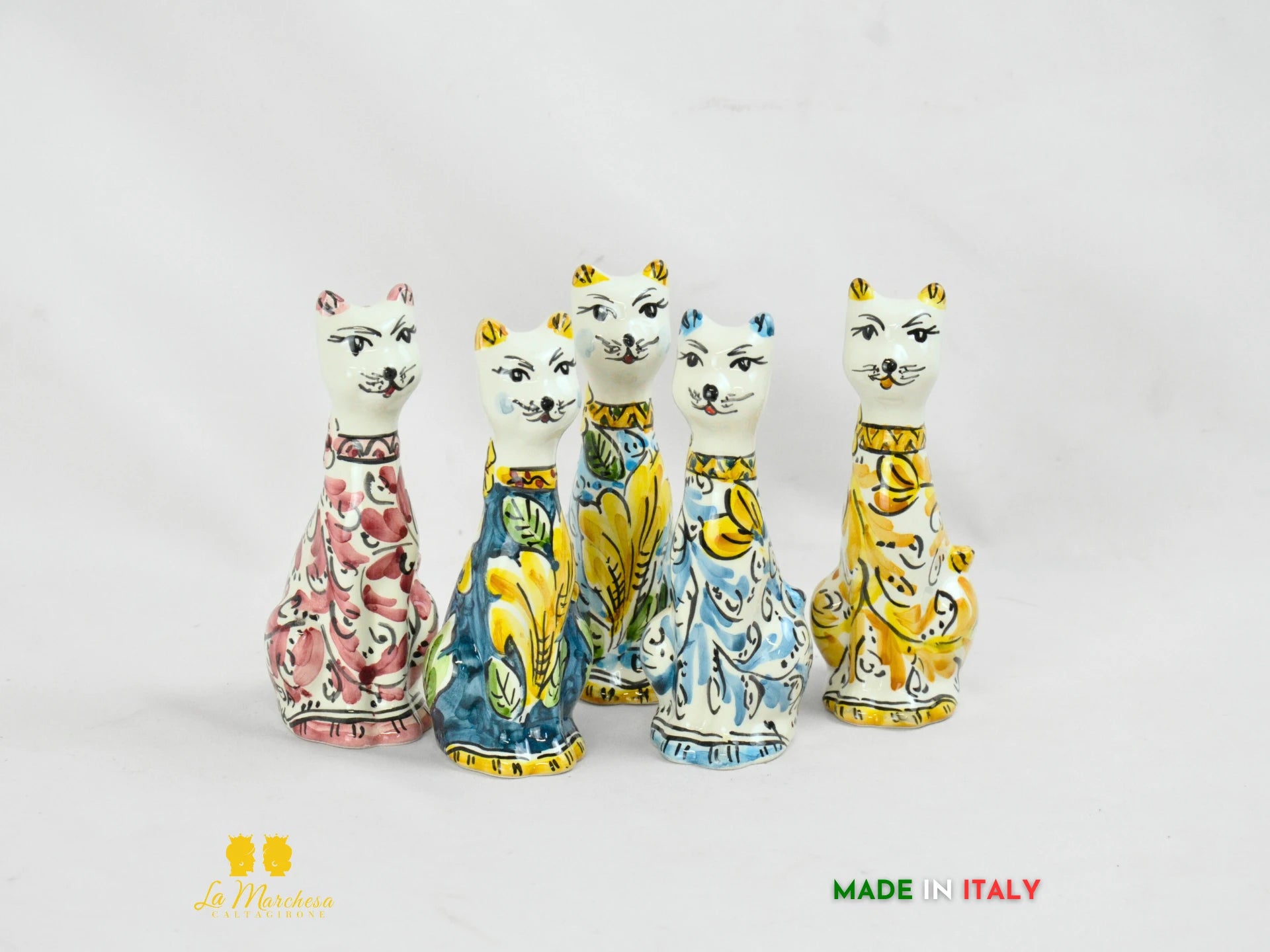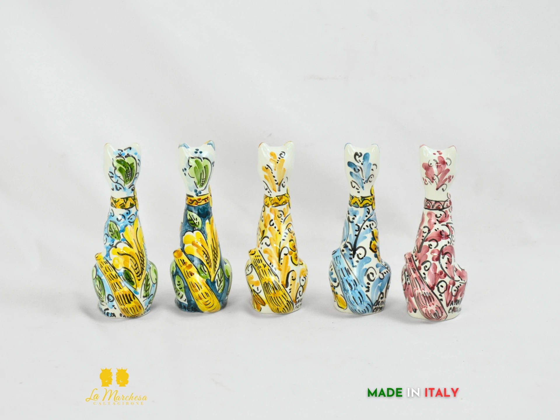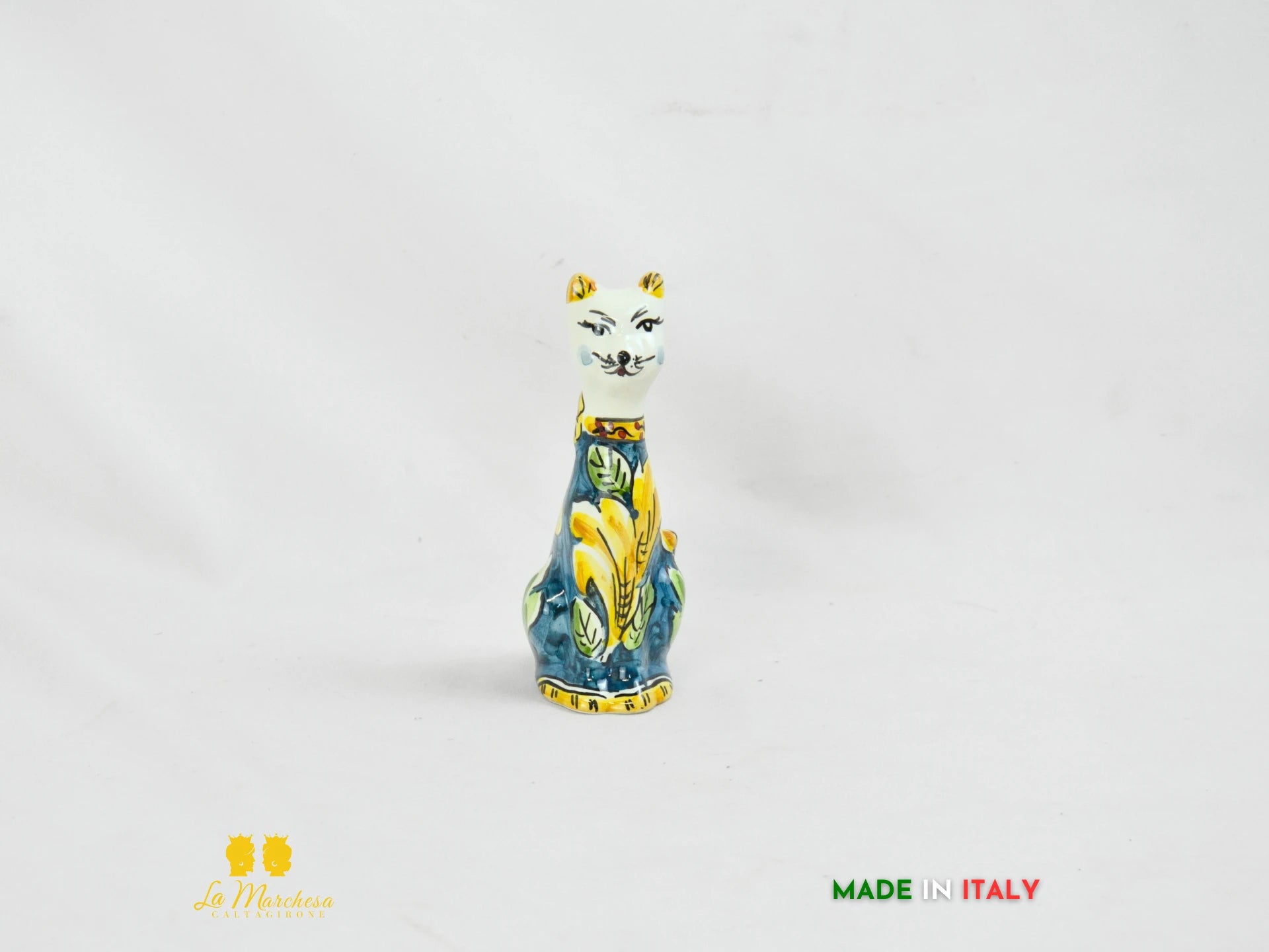 Ideale come oggetto decorativo per la casa, la scrivania o una vetrina, il gatto in ceramica è perfetto per chi ama l’artigianato italiano e desidera portare in casa un simbolo di eleganza e protezione. Disponibile in diverse versioni cromatiche, ogni pezzo è firmato a mano e racconta la storia dell’eccellenza ceramica calatina.