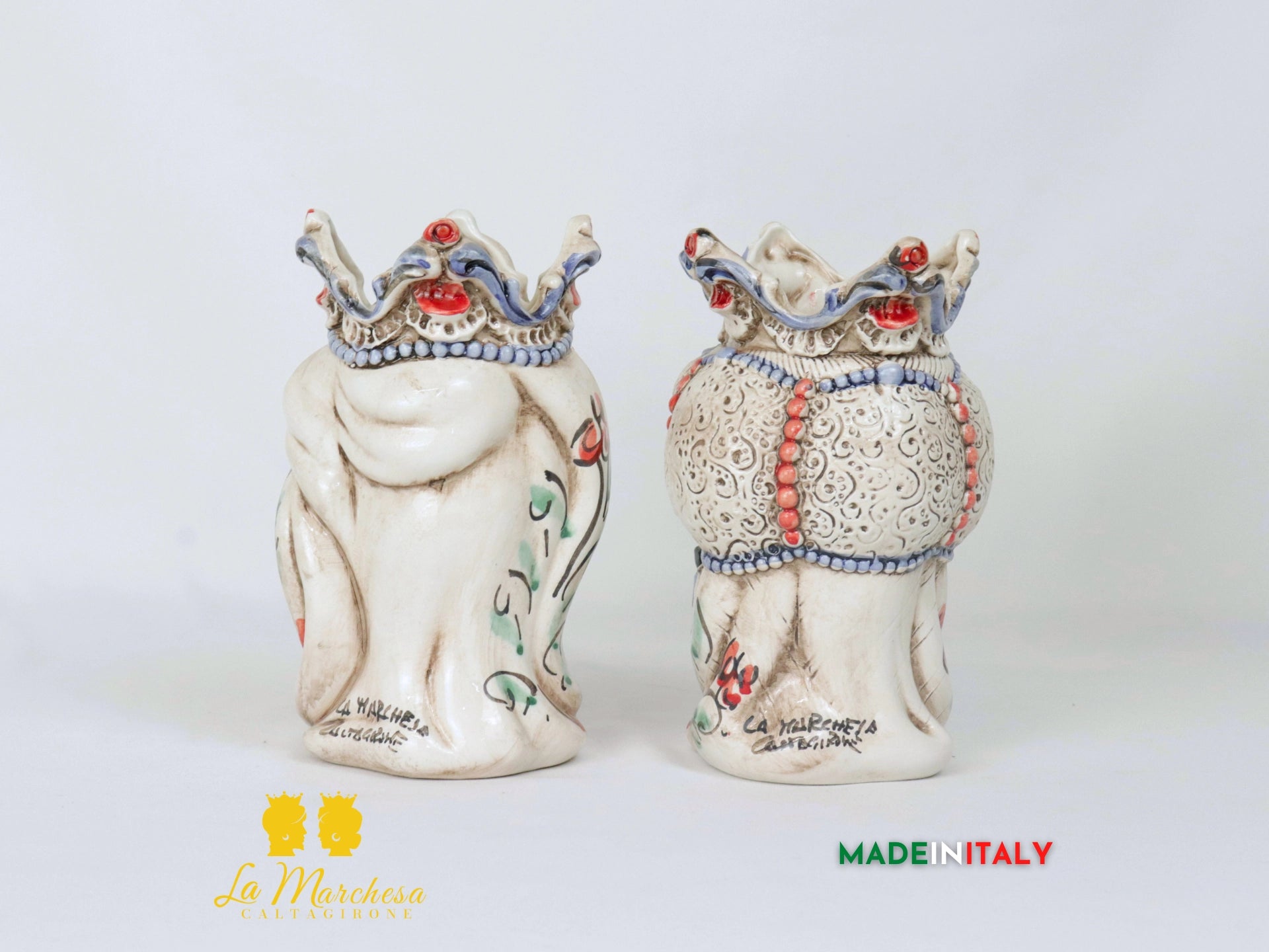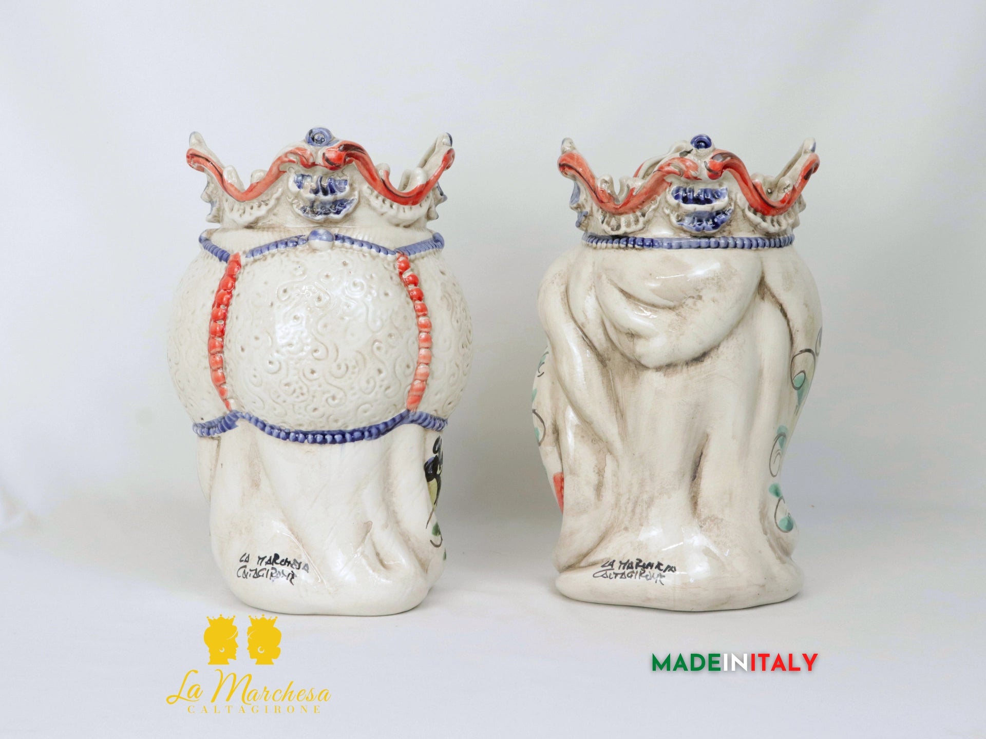 Altezza 20cm e 29cm. Cottura a 950°. Firma a fuoco e certificato di garanzia.