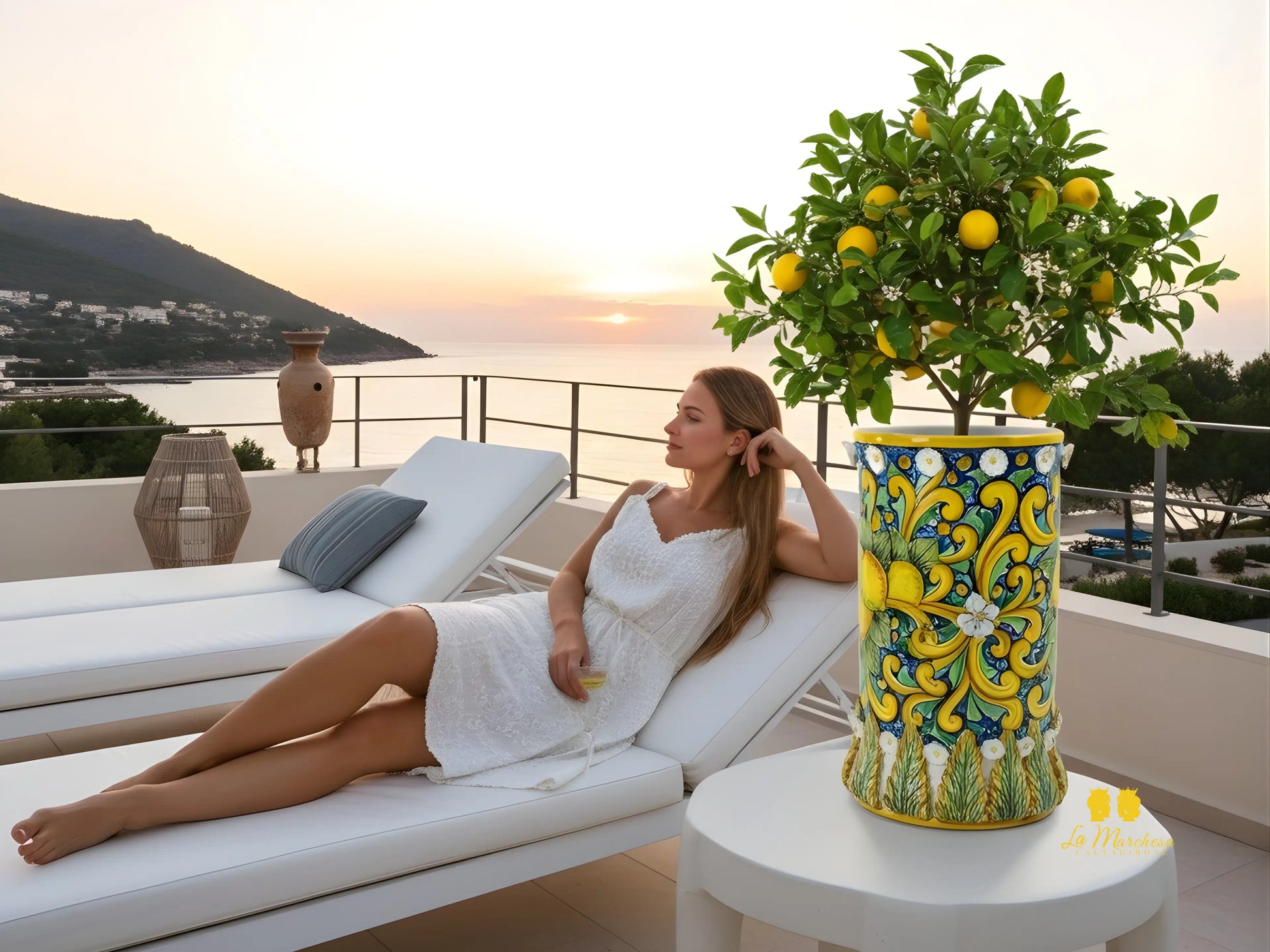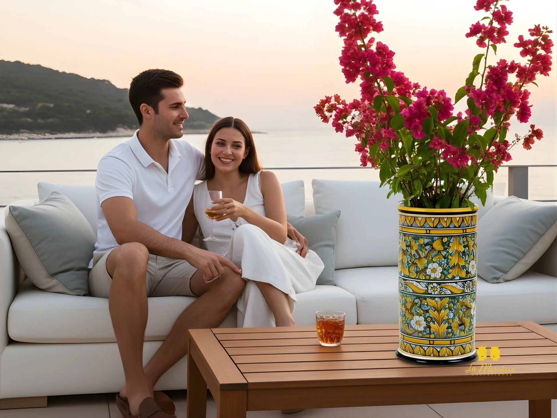 Vaso a Cilindro Decorato in Ceramica di Caltagirone 40cm - Vari Decori