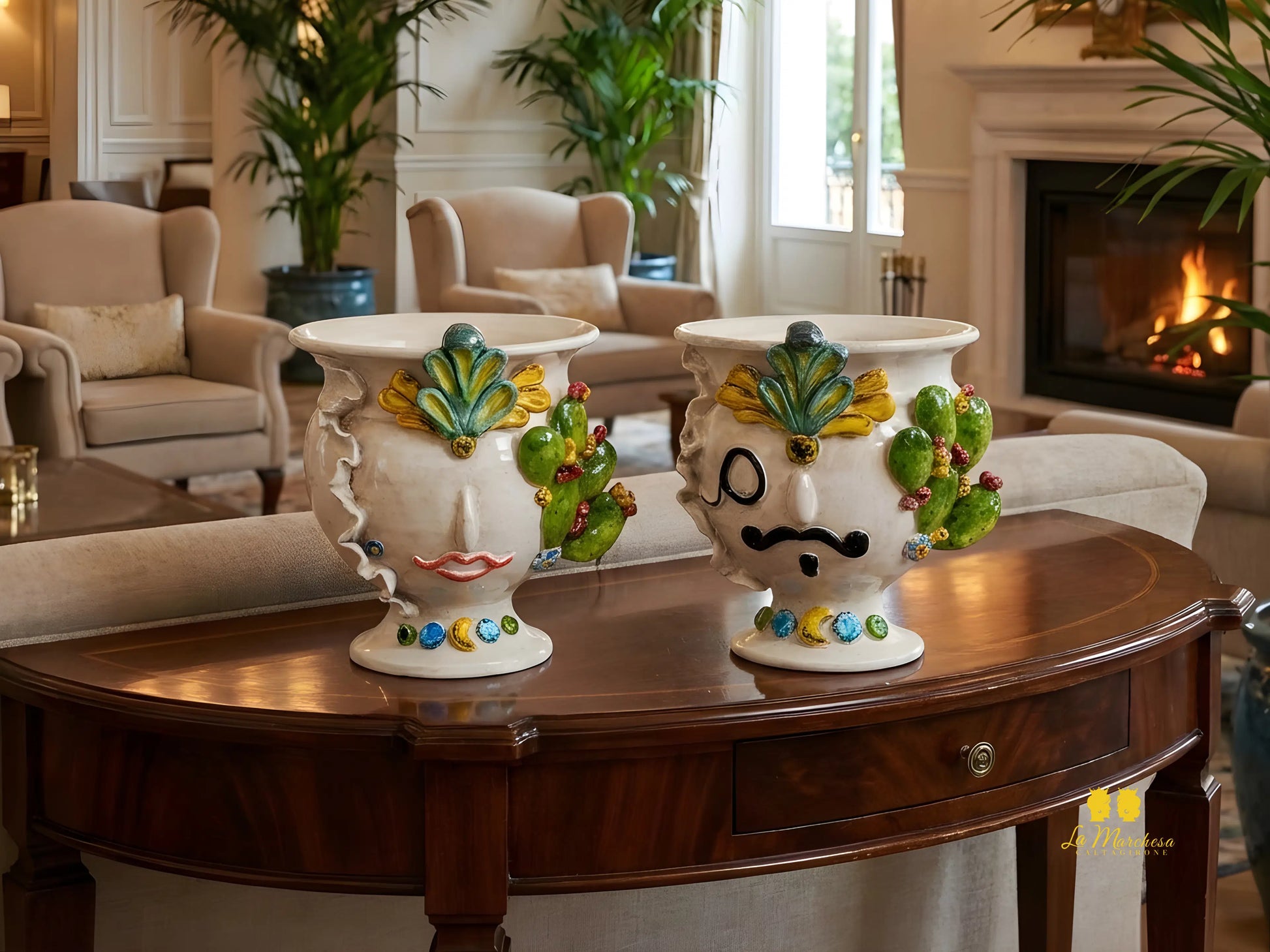 Vaso Design Volto in Ceramica di Caltagirone Fichi D'India 24cm